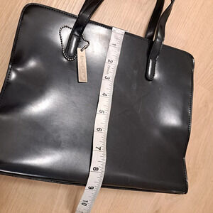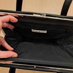 Bebe Black Shiny Leather Minimalist Snap Closure Y2K Medium Handbag Purse