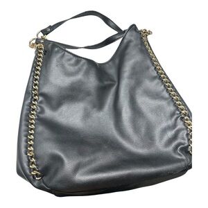 Bebe Black Shoulder Bag with Gold Chain Accents