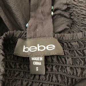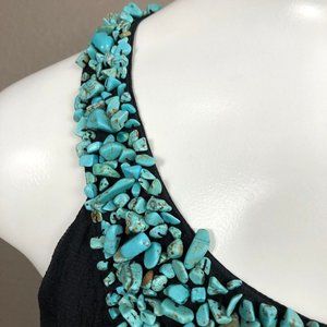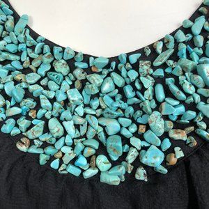 Bebe Black Silk Hand Sewn Turquoise Nugget Elastic Hem Top Sz S Pre-Own…
