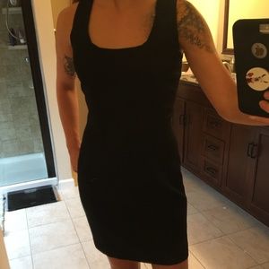 Excellent condition. 100% wool which makes it not too hot and not too cold. It is the perfect thickness to give your body a nice hourglass shape. Zipper is in the back. Awesome little black dress for any occasion.