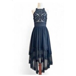 Bebe Black Steampunk Sexy Gothic Halter High-Low Lace Party Dress Sheer Sz 8