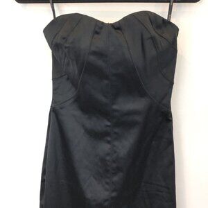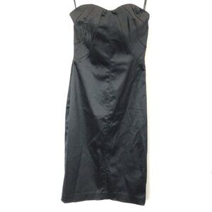 Bebe Black Strapless Satin Senia Midi Dress Size XS Sweetheart Neckline Y2K