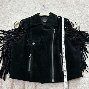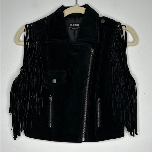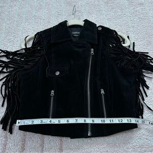 Bebe Black Suede Fringe Moto Western Vest Size Small Asymmetric Zip Bike Week