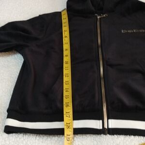 Bebe Black Velour Hooded Jacket W/ Rhinestone Logo