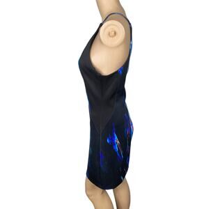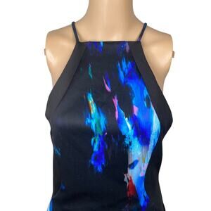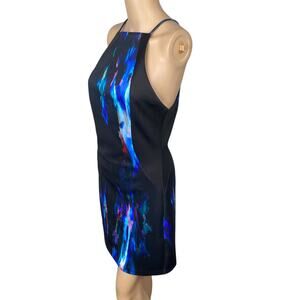 Bebe Black Watercolor Abstract Print High Neck Scuba Sheath Dress SZ M