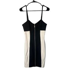 Bebe Black White Sleeveless Flirty Bodycon Stretch Mini Dress Women Sz S