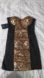 Chic mini dress with intricate gold lace. Ideal for parties and nights out.