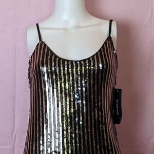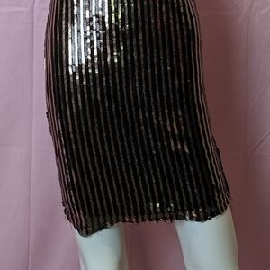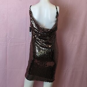 Bebe Black and Gold Sequin Stripes Cowl Back Bodycon Party Mini Dress Small
