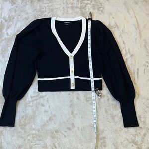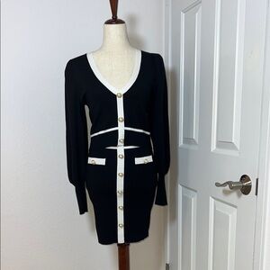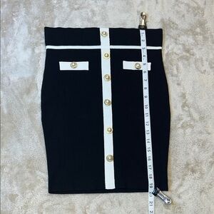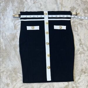 Elegant knit set with gold button accents. V-neck top and matching skirt. Never wear!