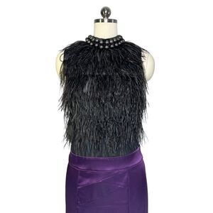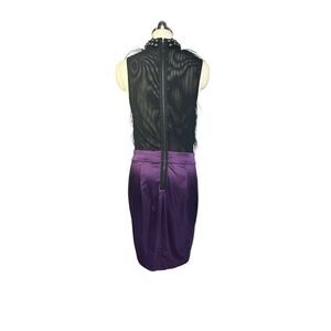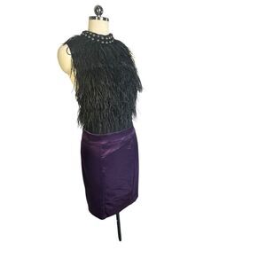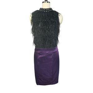 Bebe Black and Purple Beaded Feather Top Cocktail Dress | L