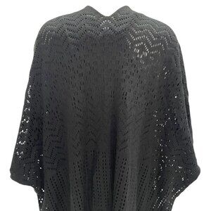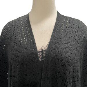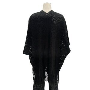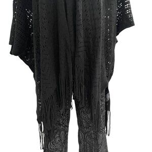 Bebe Blk Knit Poncho Fringe Boho Chic Open Front Lightweight Cover-Up Festival