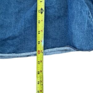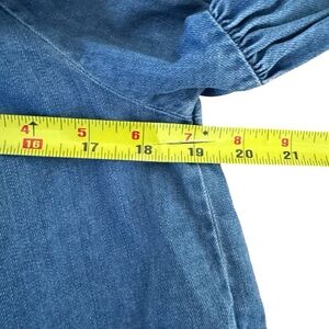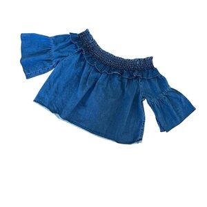 Bebe Blue Denim Jean Cropped Top Short Sleeve off the Shoulder Ruffle M