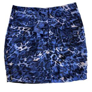Bebe Blue Leopard Print Tiered Mini Skirt Large Sexy Eighties Y2K Punk Rock Wild