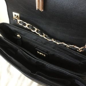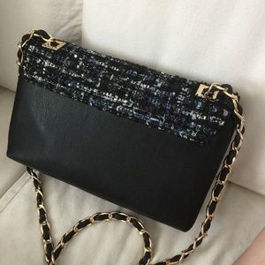 Bebe Blue and Tweed Cross body Purse with Gold