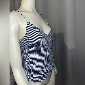 Bebe Blue/White Striped Open-Back V-Neck Tank Top XXS