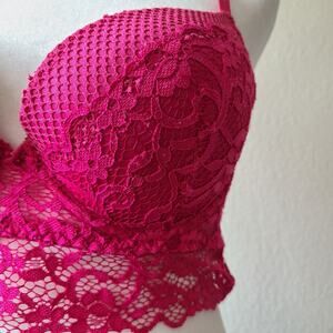 Bebe Bra Underwire Floral Pink Lace Nylon Spandex Blend Opaque