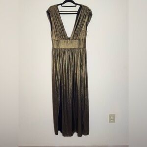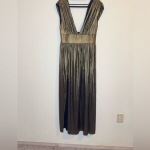 Bebe Bronze Gold Maxi Sleeveless Skort Front Splits Dresss