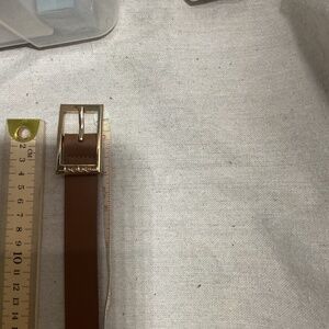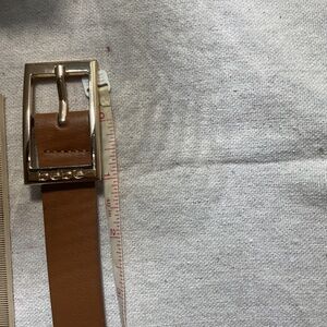 In used - good condition about 37.5” long. Stylish brown faux leather belt by Bebe, perfect for adding a polished touch to any outfit. Features a sleek design that pairs well with jeans, dresses, or skirts. Condition: Good overall with some wear around the belt hole (see photo). Still a chic and functional accessory for your wardrobe!