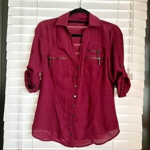 Bebe Burgundy Button Down Zip Pocket 3/4 Sleeve. Sz S πββοΈππ»