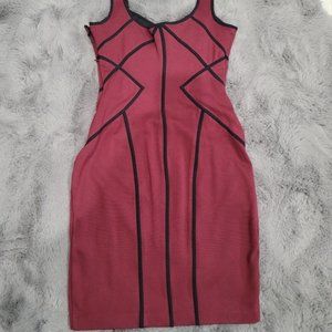 Bebe Burgundy Dress with Black Corset Design Piping Body-con. Size Medium