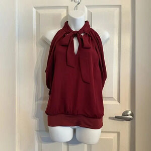 Bebe Burgundy Mock Neck Keyhole Halter Top small