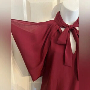 Bebe Burgundy Mock Neck Keyhole Halter‎ Top Small