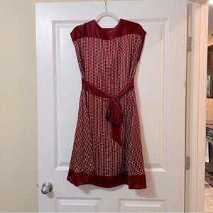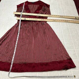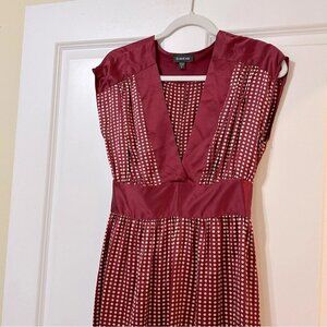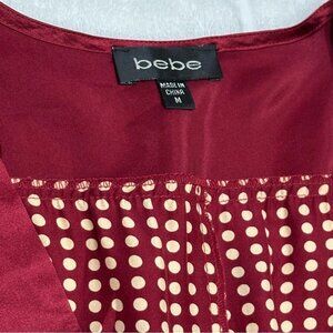 Bebe Burgundy and White Silk Midi V-Neck Polkadot Dress