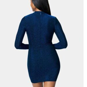 Bebe Caged Sparkle Knit Dress Long Sleeves Dazzling Blue Metallic
