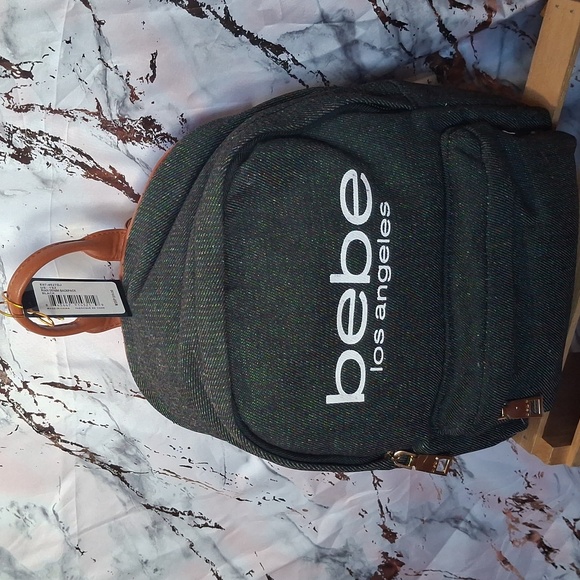 Chic charcoal backpack with bold Bebe branding. Ideal for daily adventures.