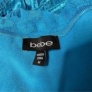 Bebe Cornflower Cottage Peasant Core Fit & Flare Mesh Detail Ruffle Hem Dress