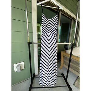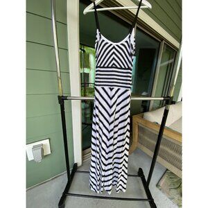 Bebe Cotton Blend Sleeveless Maxi Dress Chevron Stripes Slimming Effect Size XS