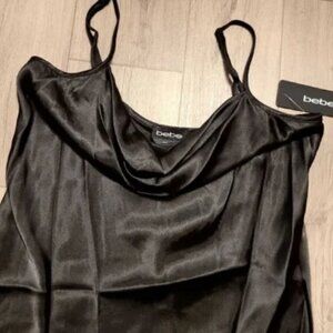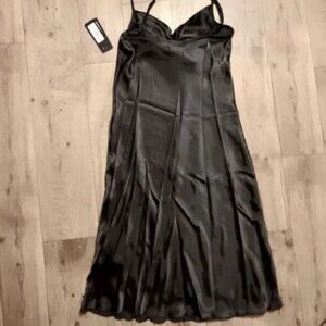 Bebe Cow Neck Satin Black Slip Dress Size M NWT