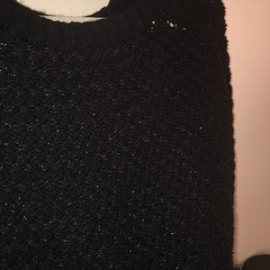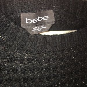 Black with silver thread Bebe scoop neck sweater in great condition, hardly worn. Elegant with a touch of sparkle for a glamorous look! Size small. The back is a little bit longer than the front, see 4th picture.
