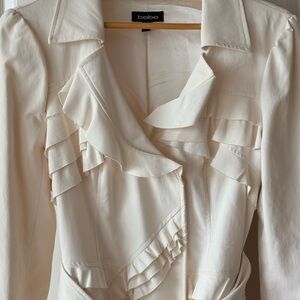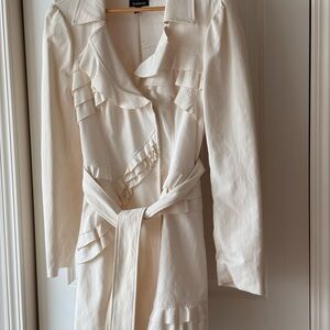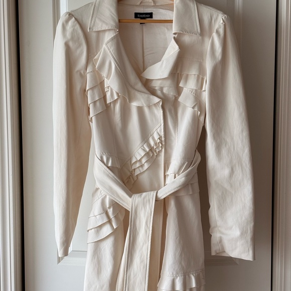 Bebe Cream Ruffle Trench Coat