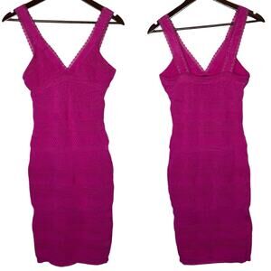 Bebe Crochet Bandage Bodycon Midi Dress Fuchsia Pink size XS