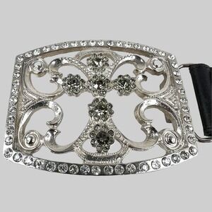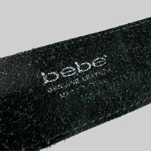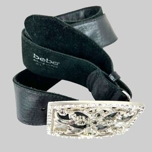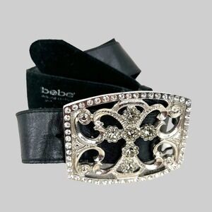 Bebe Cross Buckle Black Leather Belt Rhinestone Studded Women's Size S/M