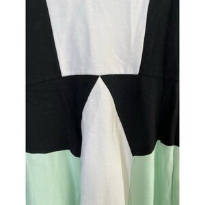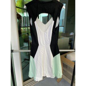 Bebe Cut-out Color Block Fit & Flare Skater Dress black/white/mint SMALL