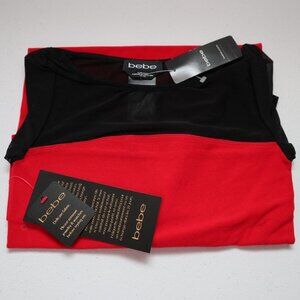 Bebe Dakota Red Mesh Inset Dress Size S NWT