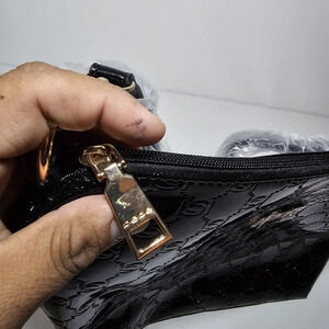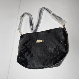 Bebe Dana Embossed Patent Black With Gold Hardware Shoulder Bag New Without Tags
