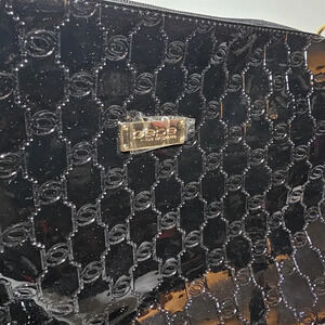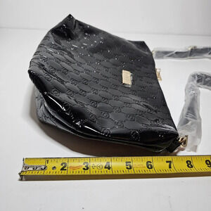 Bebe Dana Embossed Patent Black With Gold Hardware Shoulder Bag New Without Tags see pictures for reference and measuremnts