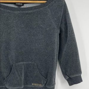 Bebe Dark Gray Velour Pullover Sweatshirt (XS)