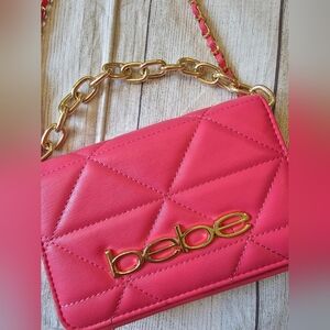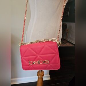 Bebe Dark Pink Small Quilted Crossbody Gold Chain Strap Purse Handbag Compact size. Great for date night, events, and outings. Please see the measurements in photos provided. In good Pre-owned condition. Cross posted. I ship out same or next day. Thanks for looking!
