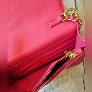 Bebe Dark Pink Small Quilted Crossbody Gold Chain Strap Purse Handbag Compact