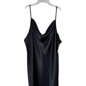 Bebe Dress 3X Black Slip Midi Cowl Neck Satin Style Plus Size Made in USA NWT