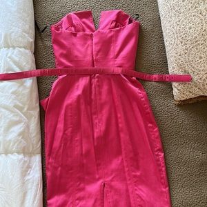 Barbie Pink Bebe Dress. This style dress is gorgeous, body contouring, however it is in desperate need of dry cleaning. It comes with the belt, but one of the loops pulled and need to be sewed back. It’s just been stored in a closet so needs a refreshing but it’s a beautiful dress. Doesn’t fit me anymore but I tried it on to give an idea of the fit.