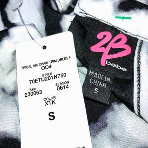Bebe Dress Sleeveless Tribal Ink with Chain Trim Stretch NEW with tags