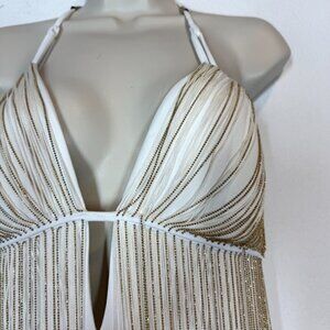 Bebe Dress White gold Fringe Party Cocktail Mini. New with Tags. Lined.
