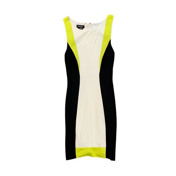 Bebe Dress Women XS Extra Small Multi Paneled Bodycon Back Zip Fitted Lined Mini