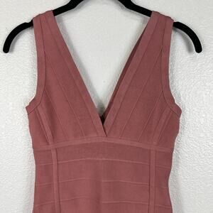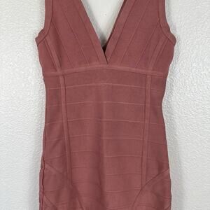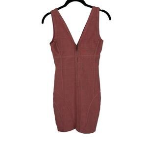 Bebe Dress Women XS Pink Double V Neck Bandage Mini Bodycon Sleeveless Party Y2K