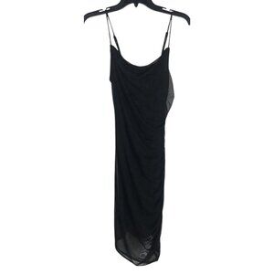 Bebe Dress Womens Size Small S Black Ruched Mesh Mini Dress